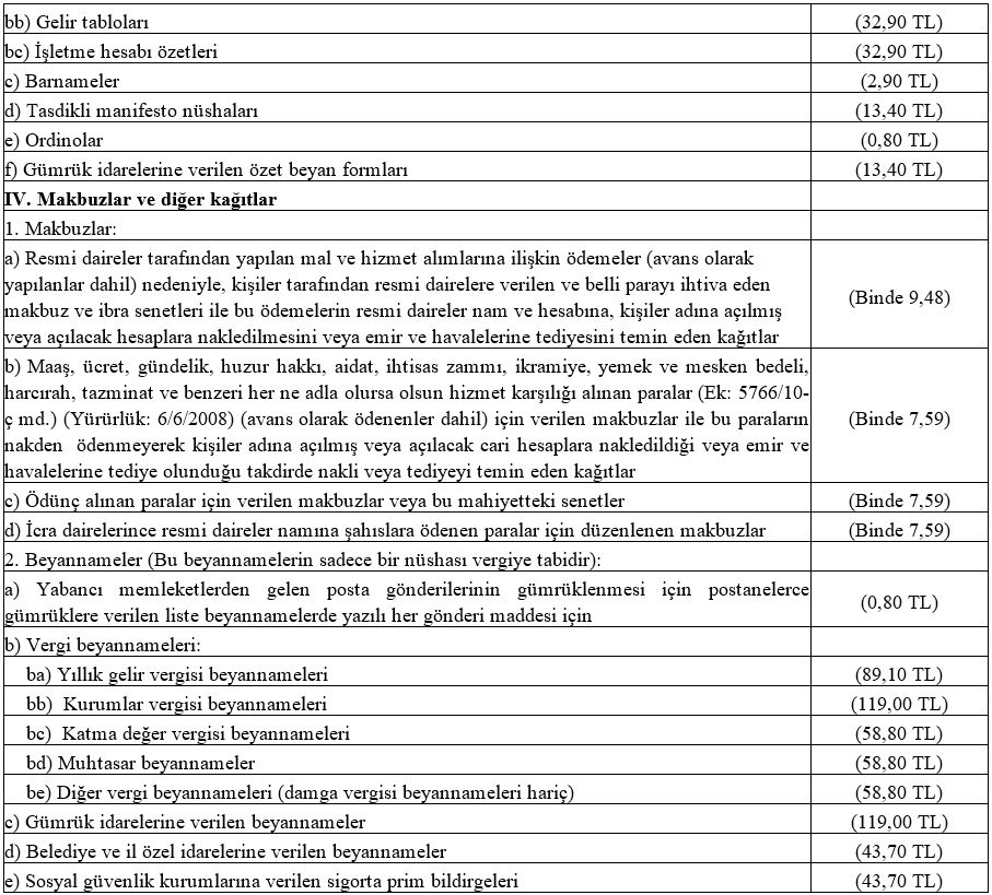 1/1/2020 tarihinden itibaren uygulanmak üzere yeni tutarlar aşağıdaki tabloda gösterilmiştir. Diğer taraftan, anılan her bir kağıttan alınacak damga vergisine ilişkin üst sınır yeniden değerleme oranında artırılmış ve 1/1/2020 tarihinden itibaren 3.239.556,40 TL olmuştur.